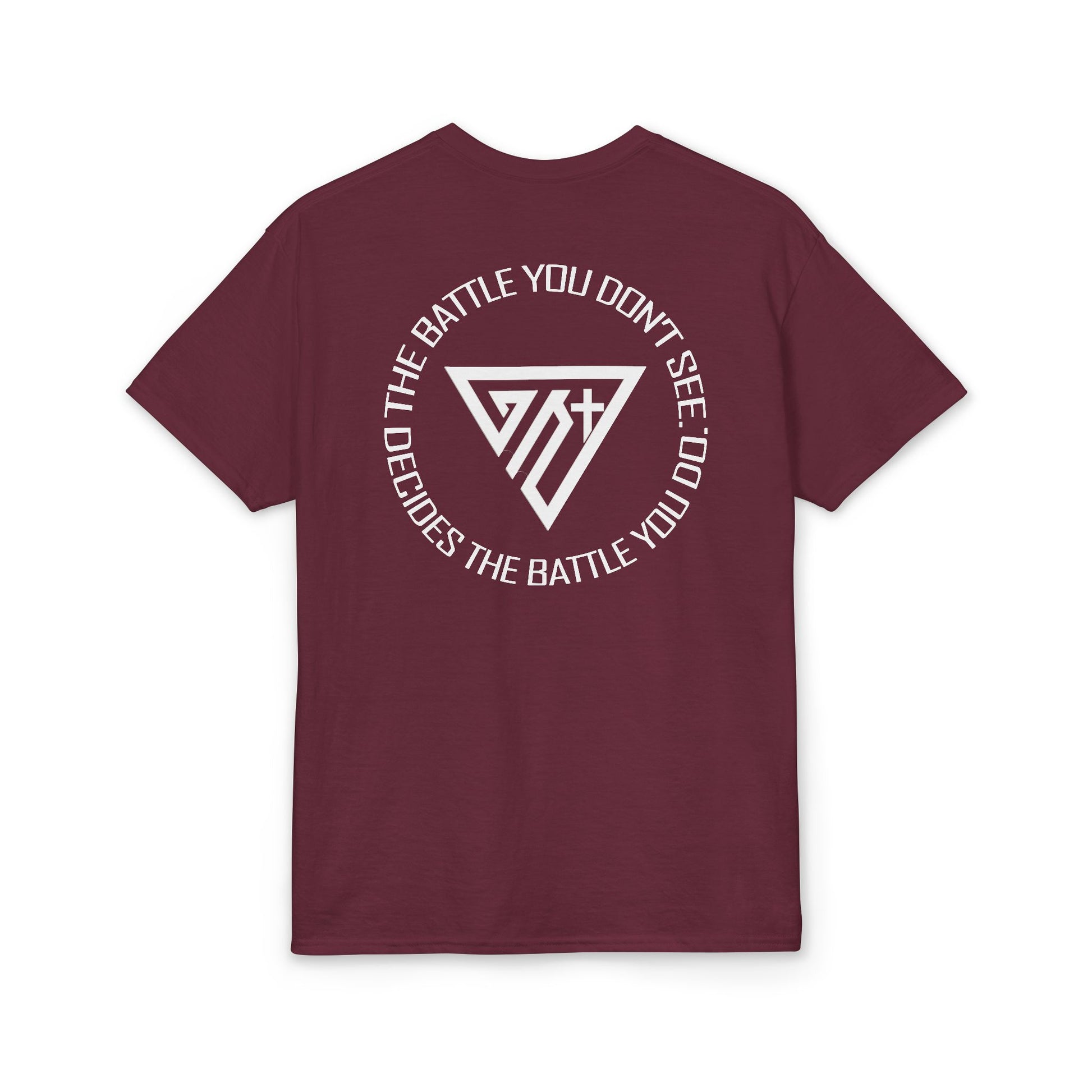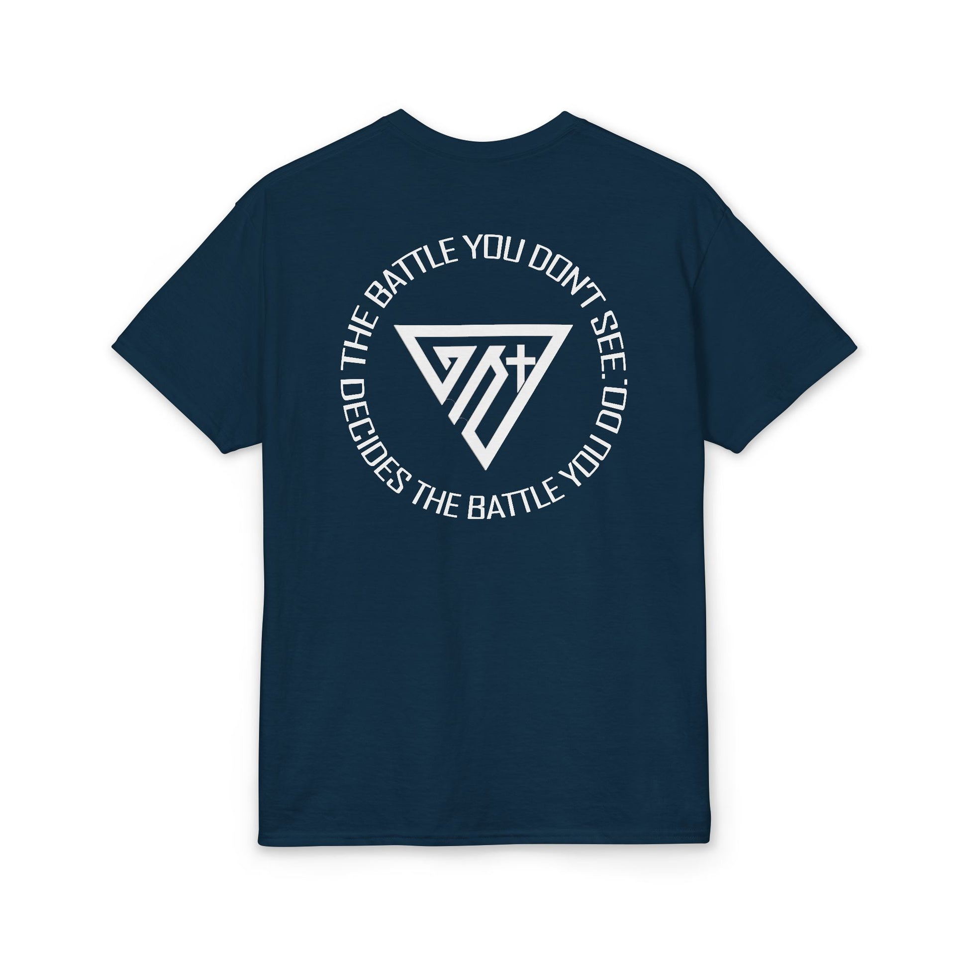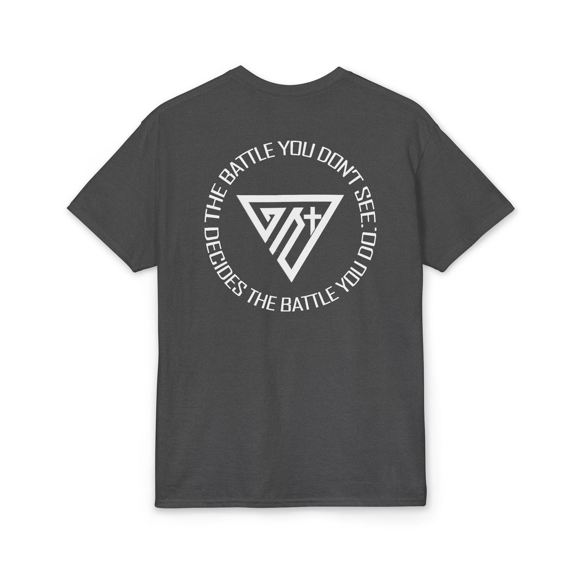 Power doesn’t always make noise. This Christian faith tee features the message: “The battle you don’t see decides the battle you do.” Inspired by spiritual warfare and conviction, the design reminds us that faith, discipline, and inner resolve shape every outward victory.